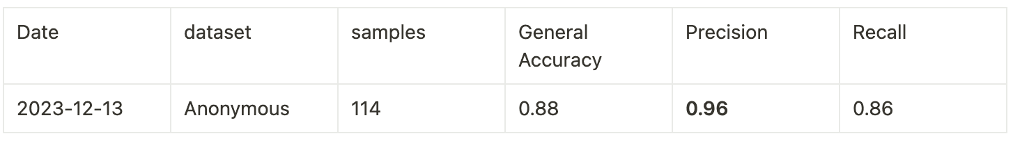 Comparing the true statuses and the predicted statuses, we can calculate several metrics: